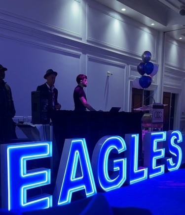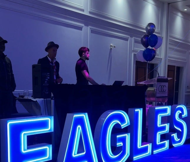 Transforming corporate gatherings with vibrant marquee letter displays.